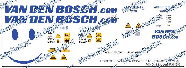 Decalsatz – VAN DEN BOSCH, Blau Tank Container 20 ft. H0