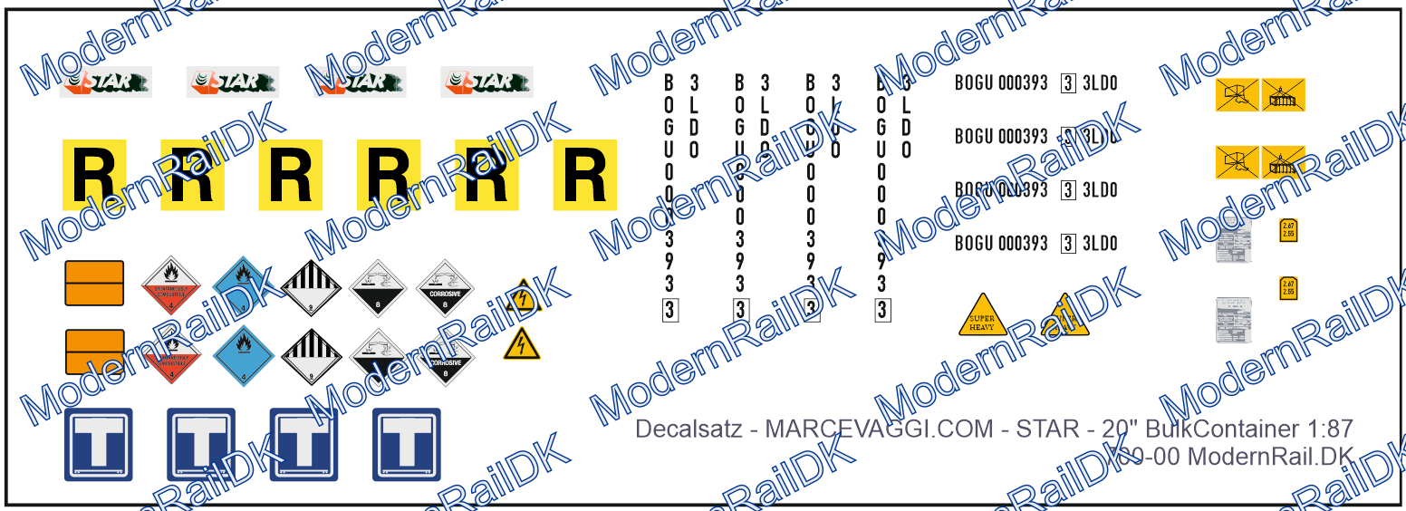 1 Stück Decalset für eine Bulk Container- STAR – MARCEVAGGI Bulk container H0