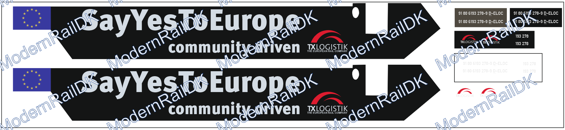 1 Stück Decalset für eine Lok – TXLogistik „TXL“ „SayYesToEurope“ – Sett für 1 TXL 6193 278-9 H0