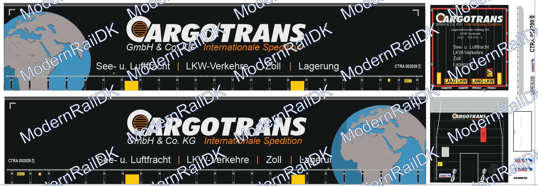 1 Stück Decalset für eine Herpa Auflieger – CARGOTRANS Globus Version, Schmitz Auflieger H0