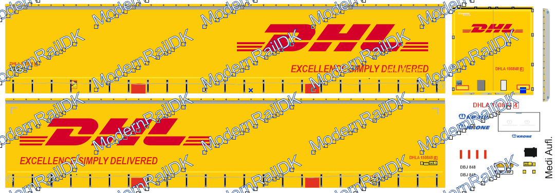 1 Stück Decalset für eine Herpa Auflieger – DHL new design, Krone, (Medi Trailer)