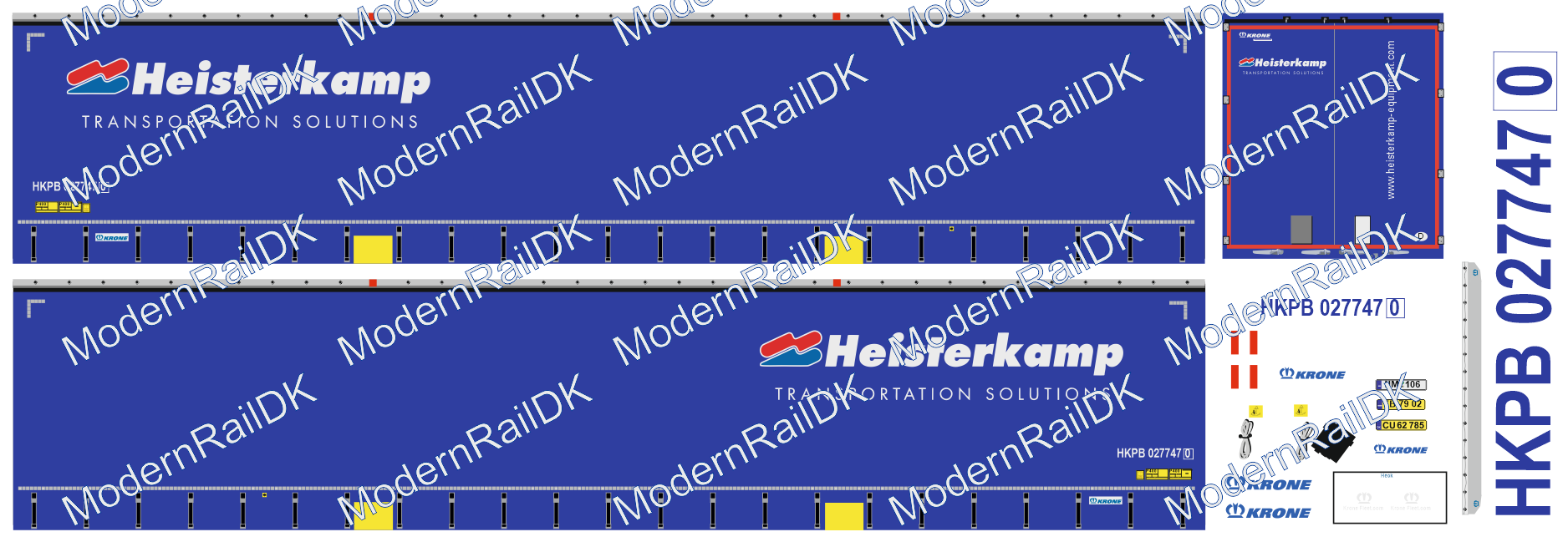 1 Stück Decalset für eine Herpa Auflieger – Heisterkamp, Blau Krone / Trailer)