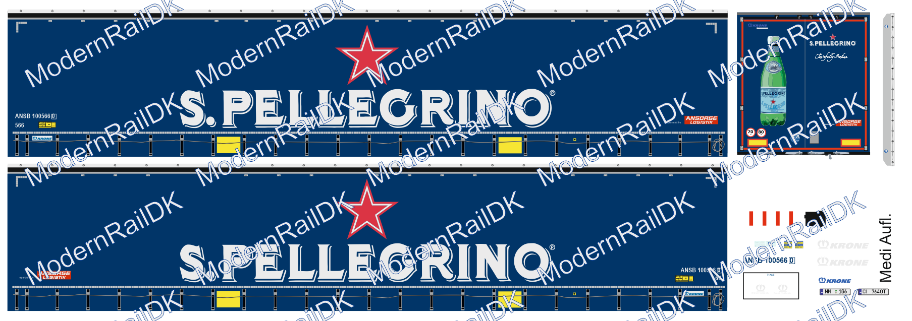1 Stück Decalset für eine Herpa Auflieger – S.Pellegrino Ansorge, Medi Krone