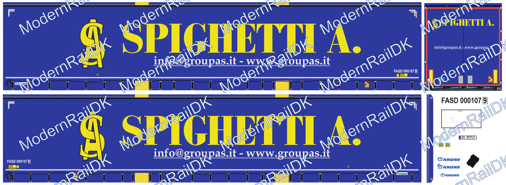 1 Stück Decalset für eine Herpa Auflieger – SPIGHETTI A – Groupas.it, Krone Auflieger H0