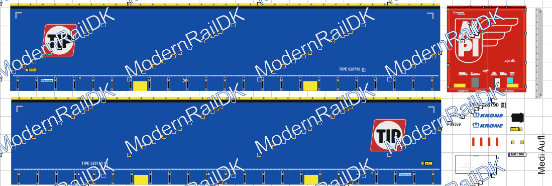 1 Stück Decalset für eine Herpa Auflieger – TIP / ALPI Hinter, Medi Krone Auflieger