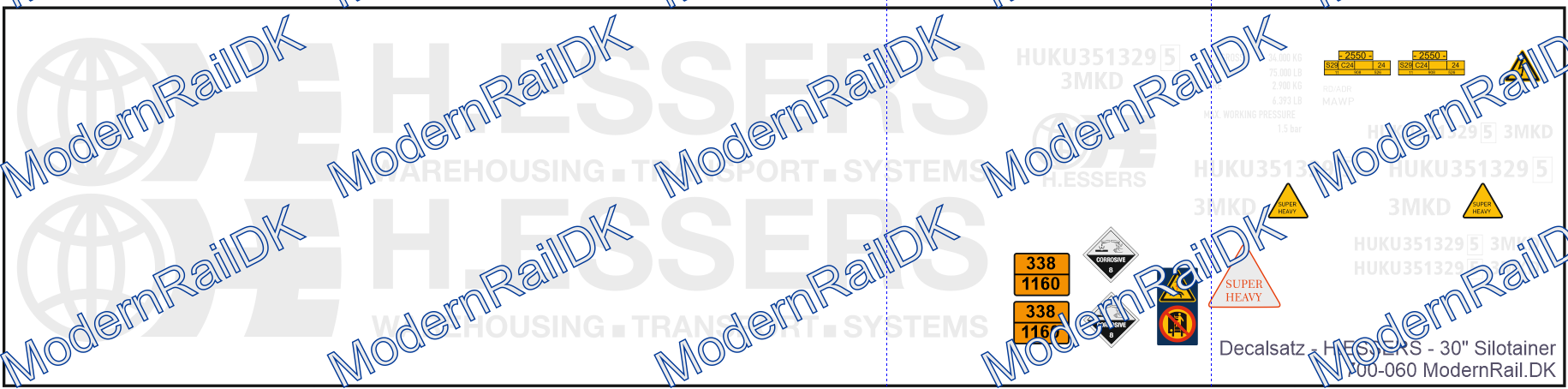 1 Stück Decalsatz für eine Herpa H.ESSERS, 30″ Silo Container H0